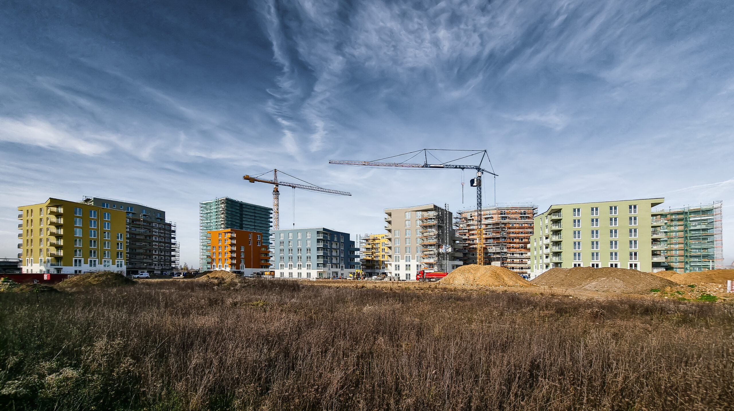 GF ca. 42.500 m², Gewerbe, Café, 11 Häuser, davon 3 Hochhäuser (433 WE), Gemeinschaftseinrichtungen, KiTa, Mobilitätsstation, geförderter Wohnungsbau EOF